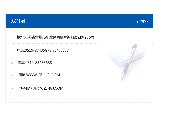 地址:常州市新北區友邦商務大廈1幢16、17層  電話:0519-85101652  傳真:0519-85112595  郵編:213022  網址:www_cz-jiayue_cn.qdguerte.com  郵箱:xiajifengaa@163.com